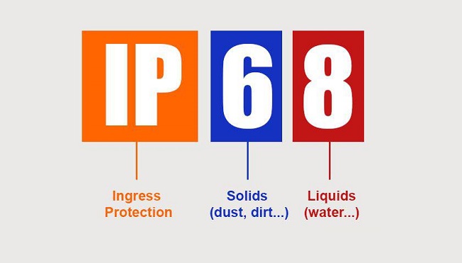 به طور کلی میتوان گفت که استانداردهای IP، میزان استحکام یک دستگاه در برابر مایعات و جامدات را نشان میدهند. کلمه IP کوچک شده عبارت “Ingress Protection” با معنی “محافظت در برابر ورود” است. این کلمه با یک عدد دو رقمی معرفی میشود، که رقم اول نشانگر میزان مقاومت در برابر ذرات جامد (مثل گرد و غبار، خاک و…) است و میتواند بین اعداد یک تا شش متغیر باشد. رقم دوم نیز که در بازه اعداد یک تا هشت انتخاب میشود نشانگر میزان استحکام دستگاه در برابر آب است و نشان میدهد که این محصول قادر است بدون آسیب دیدن تا چه حد در برابر این مایع مقاومت داشته باشد. طبق انتظار، هرچه عدد دو رقمی اعلام شده پس از کلمه IP، مقدار بزرگتری باشد، آن دستگاه در برابر مواد مایع و جامد از مقاومت بهتری برخوردار است و میتواند با قدرت بیشتری از ورود آنها به درون بدنه خود جلوگیری کند.ک گوشی دارای استاندارد مقاومتی IP67، به صورت کامل در برابر گرد و خاک مقاوم است و همچنین میتواند در مدت زمان کمتر از 30 دقیقه در عمق یک متری آب دوام بیاورد و از ورود این مایع به درون بدنه خود جلوگیری کند. استاندارد IP68 که این روزها میتوان حضور آن در بسیاری از گوشیهای پرچمدار را شاهد بود نیز نشان میدهد که این دستگاه به صورت کامل در برابر گرد و خاک ایمن است و همچنین میتواند حداکثر به مدت 30 دقیقه در عمق 1.5 متری آب، بدون آسیب رسیدن به اجزای داخلی، مورد استفاده قرار بگیرد.