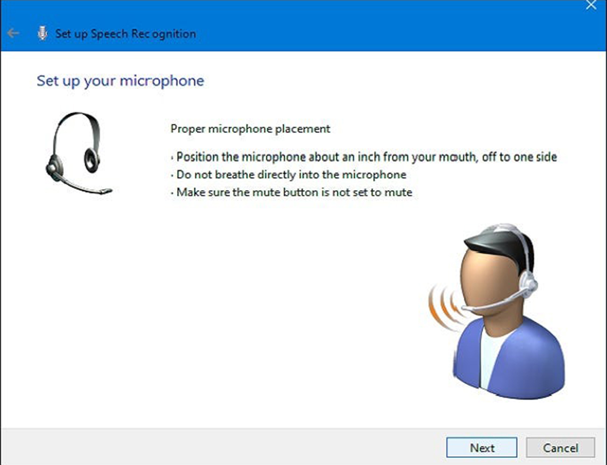 برای انجام تنظیمات اولیه، میکروفون هدست، میکروفون رومیزی یا سایر میکروفونهای جانبی را به دستگاه خود وصل کنید. سپس برای انتخاب و کالیبراسیون آن، دستورالعمل روی صفحه را دنبال کنید. توصیه میکنیم از میکروفون هدست برای نرمافزارهای دیکته استفاده کنید.